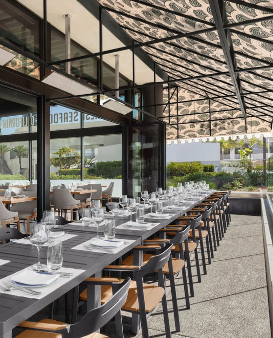 Our sun-soaked patio and airy interiors blend seamlessly, inviting you to savor every bite in our picturesque setting.